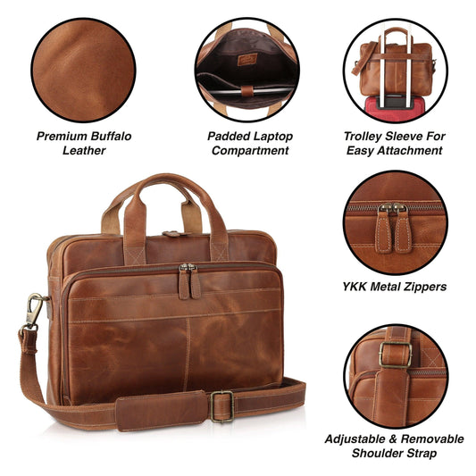 16" Leather Briefcase – Premium Laptop Bag | Office, School, College