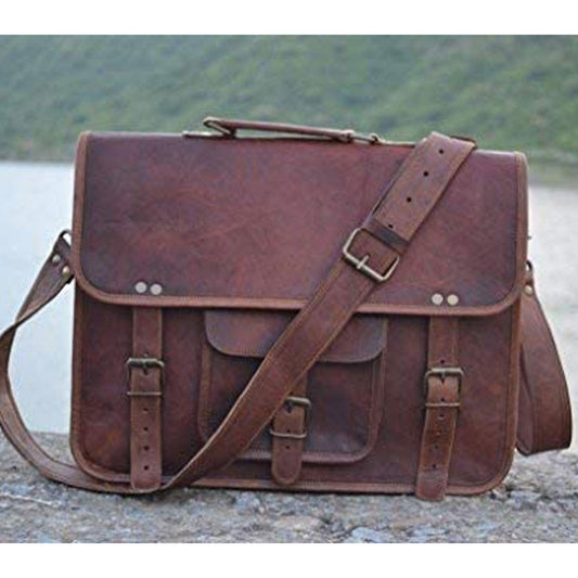 18" Vintage Handmade Leather Messenger Bag – Laptop Briefcase & Satchel