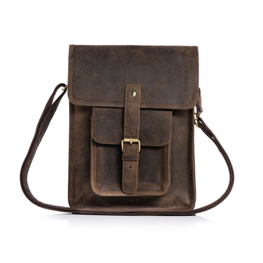 11" Sturdy Distressed Leather Satchel – iPad Messenger Bag & Crossbody Tote