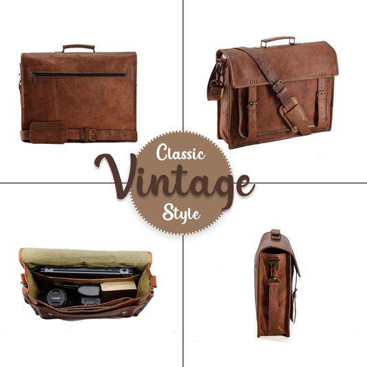 18" Vintage Handmade Leather Briefcase – Laptop Messenger & Satchel Bag
